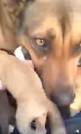 Her eyes say it all — she thought she’d never see her babies again. The relief was clear when the puppies were found and brought to safety.